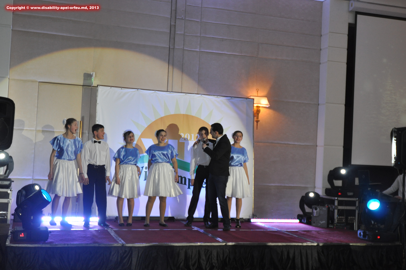 Avem in imagini participarea CPPC Orfeu impreuna cu vedetele estradei Nelly Ciobanu, Adrian Ursu etc, la editia IV a Festivalului de creatie a copiilor cu deficiente asociate „Viata impreuna” Hotel Leogrand, 2012.