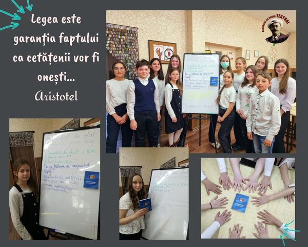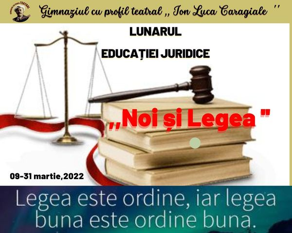 Gimnaziul cu profil teatral ”Ion Luca Caragiale””, s-a desfășurat lunarul propagării cunoștințelor juridice ,,Noi și Legea”, în cadrul căreia s-a organizat un amplu program de activități pentru dezvoltarea culturii juridice în rândul elevilor.