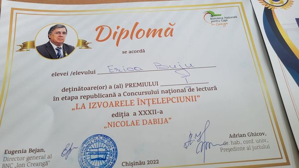 Aducem sincere felicitări elevii clasei a 9-a A Buju Erica pentru Locul I la Concursul Republican „La izvoarele intelepciunii”. Aducem profundă recunoștință mentorului care a ghidat-o doamnei Bahu Eugenia și doamnei profesoare de Limbă și literatură română Chiosa Nădejde. Felicitări dragi colegi!
