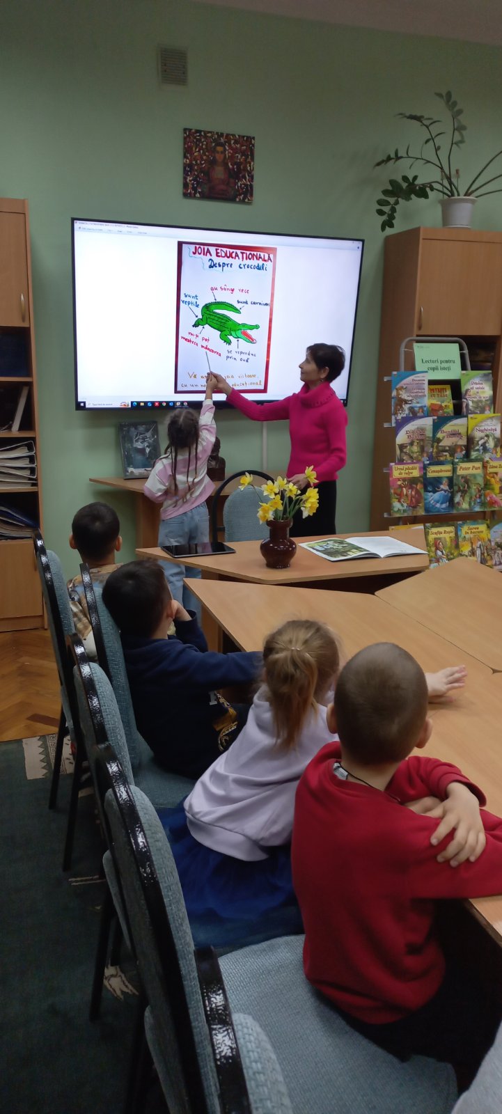 Povestea crocodilului care plânge Grădinița de copii nr.56 Astăzi copiii din grupa mare au fost în vizită la Biblioteca ,,Hristo Botev”, unde au cunoscut o nouă poveste ,,Povestea crocodilului care plânge” scrisă de Vladimir Colin.