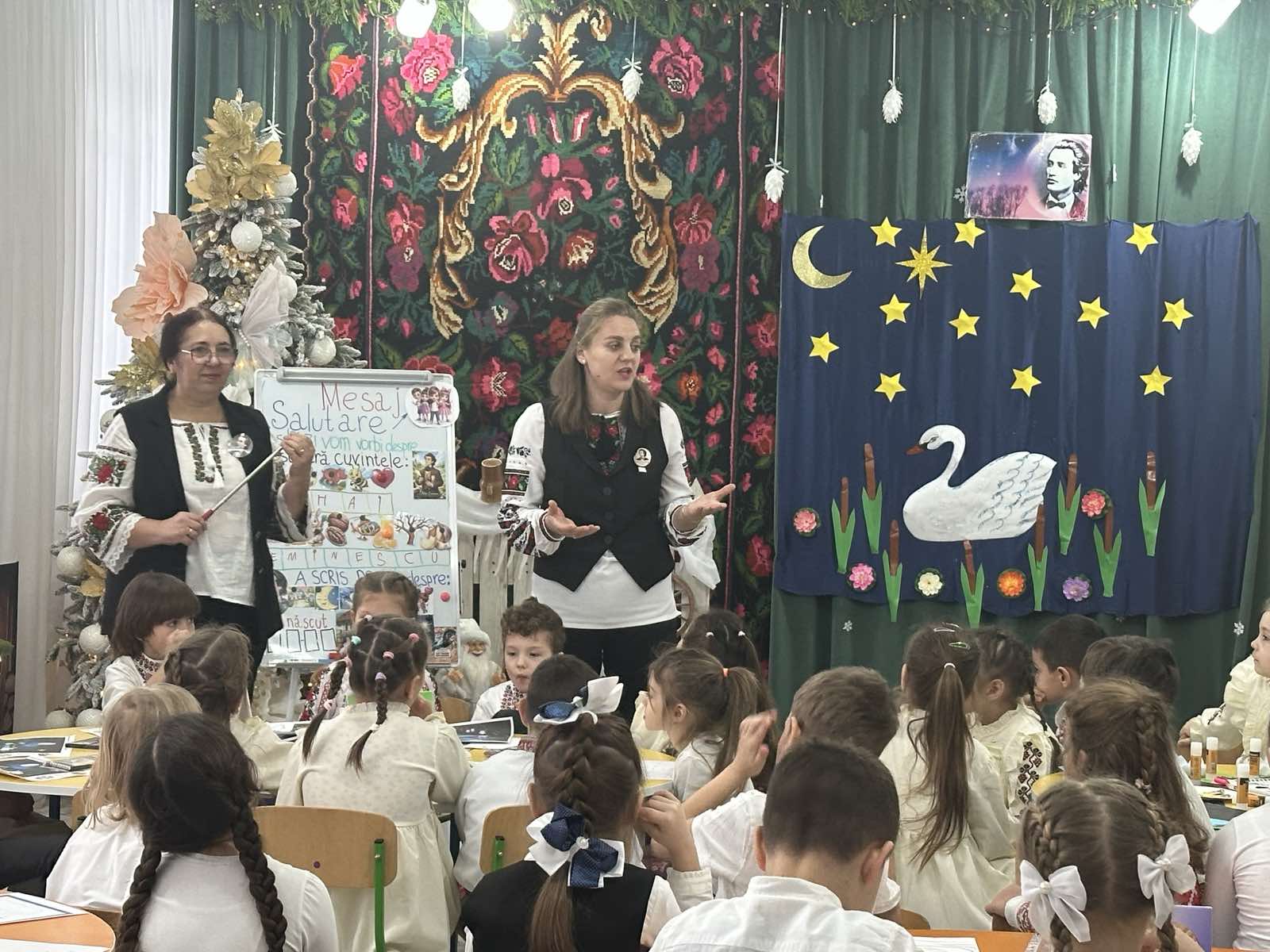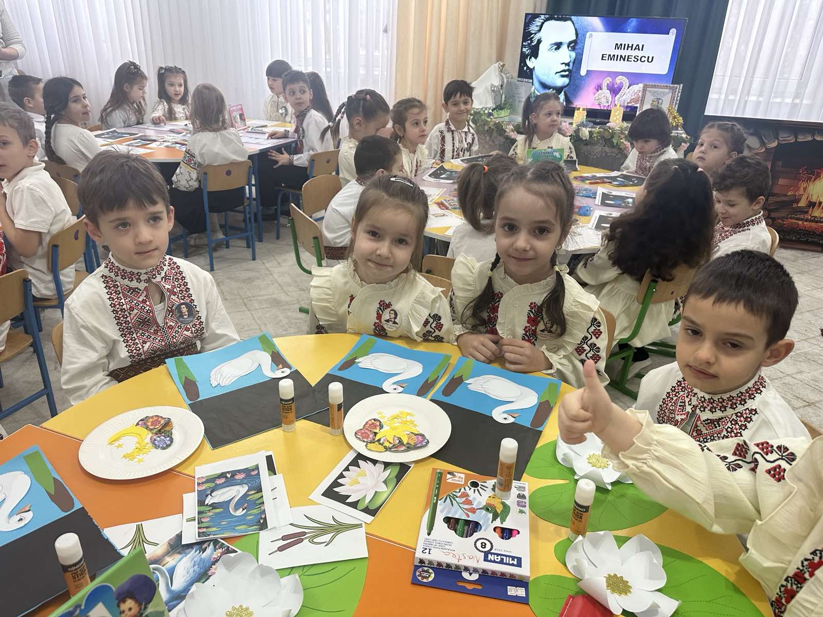 Astăzi îl sărbătorim pe Mihai Eminescu, poetul care a pus în cuvinte șoaptele naturii și visele oamenilor. Prin versurile sale, ne-a învățat să iubim limba română, liniștea serii și frumusețea lumii.