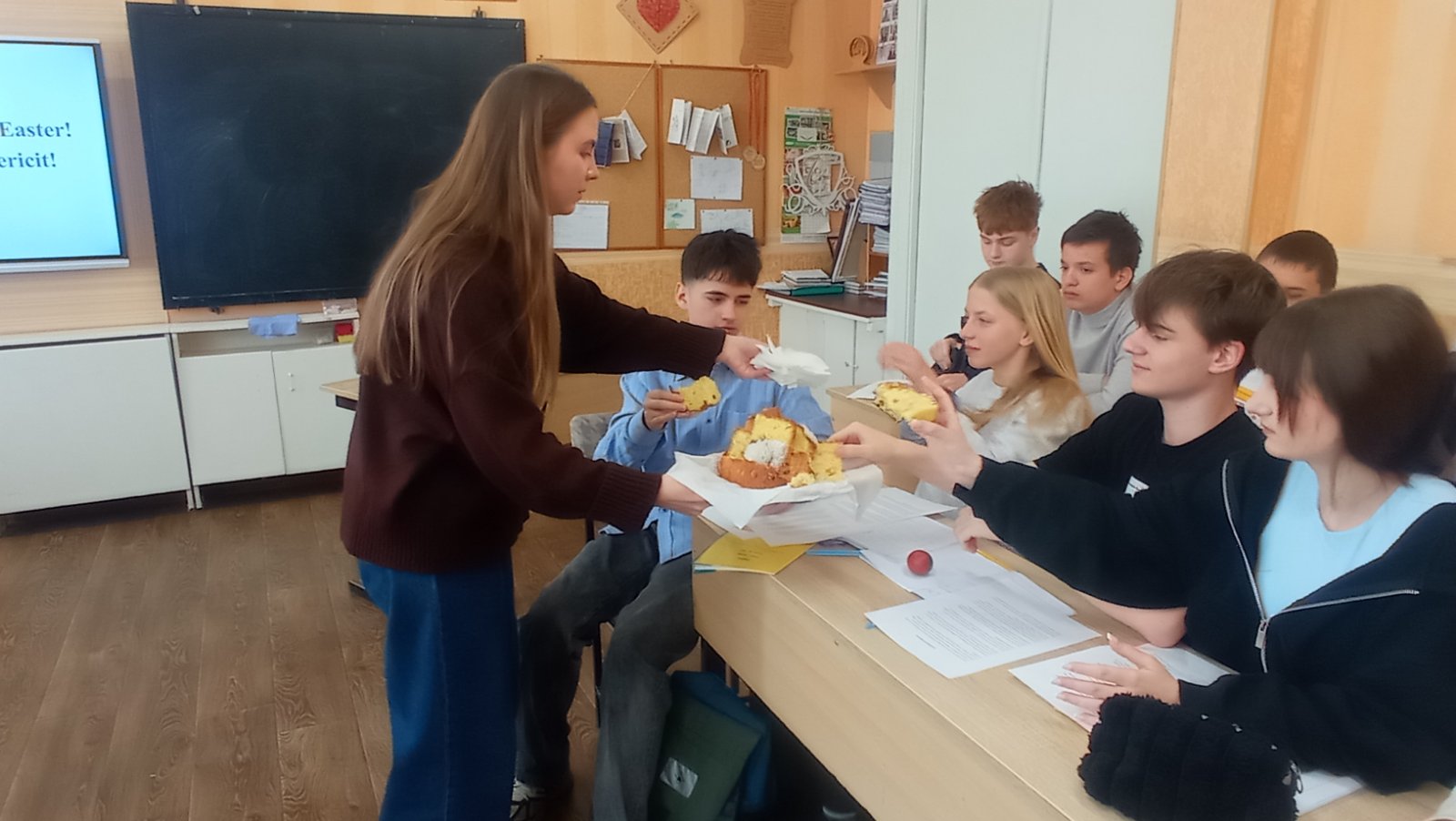Ученики не просто знакомились с материалом — они активно работали, сравнивали традиции, рассуждали, делали выводы. На английском языке ребята погрузились в особенности празднования Пасхи в Великобритании: говорили о пасхальном кролике, традиционных угощениях, таких как hot cross buns, и символике праздника. Задания были разнообразными: от восстановления логической последовательности текстов до мини-презентаций, где каждый мог проявить себя.